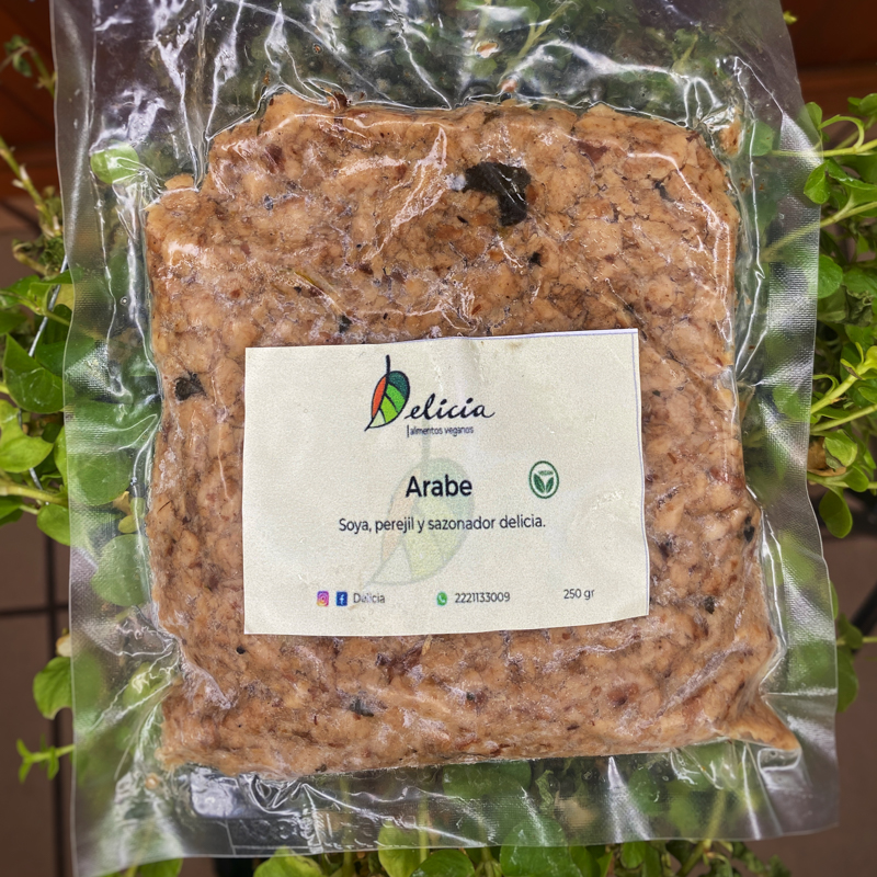Soya texturizada y condimento árabe. Contiene 250gr