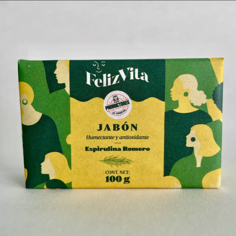 100 gramos de jabón humectante y antioxidante hecho con espirulina y romero