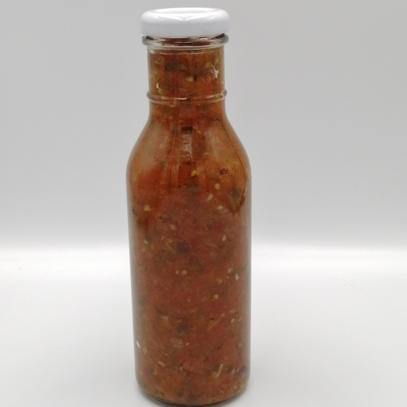 Exquisita salsa martajada estilo italiano elaborada de forma artesanal con jitomates orgánicos, condimentada con orégano, tomillo y perejil, sazonado con ajo, cebolla, sal de mar y aceite de oliva orgánico, envasada al alto vacío en frasco de vidrio para conservar sus mejores característica y benéficos.